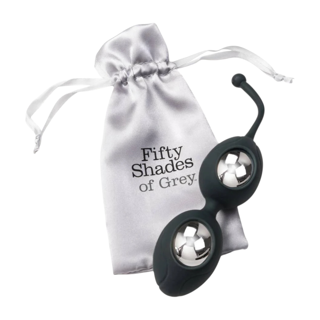 Fifty Shades of Grey Silicone Pleasure Balls – prabangūs Kegel kamuoliukai kasdienei dubens dugno treniruotei, jautresniems pojūčiams ir geresnei kontrolei intymumo metu. „Soft touch“ silikonas švelniai priglunda, o svorinis balansas padeda palaipsniui stiprinti raumenis. Šie vaginaliniai rutuliukai (geišos kamuoliukai) tinka ir pradedančiosioms, ir pažengusioms, nes leidžia kurti patogią, reguliarią rutiną už patrauklią kainą.